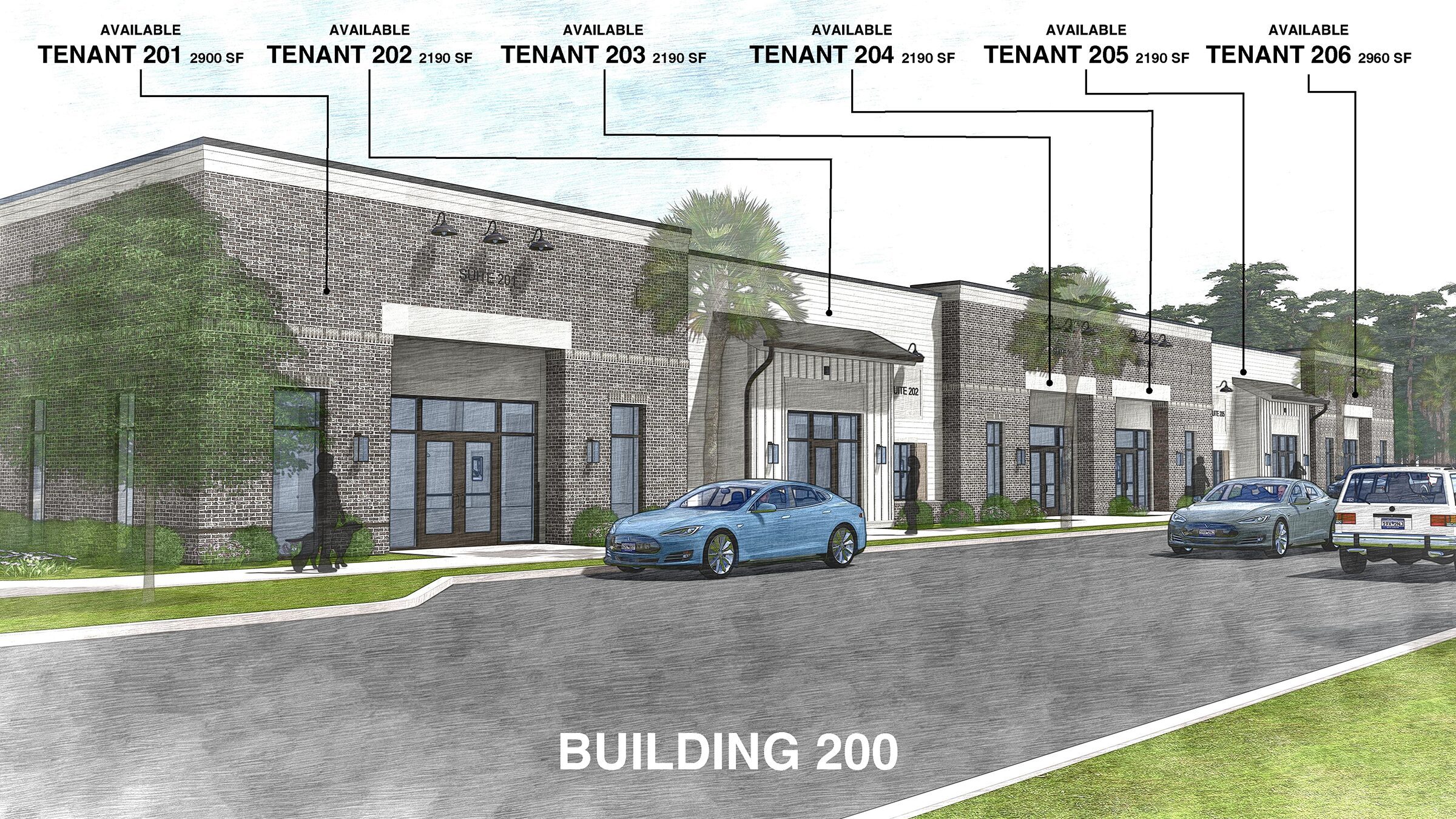 - Building 200 offers 6 tenant spaces and is being offered for sale or lease delivered in shell condition (anticipated delivery early 2026). The building can be purchased in whole or by condo.